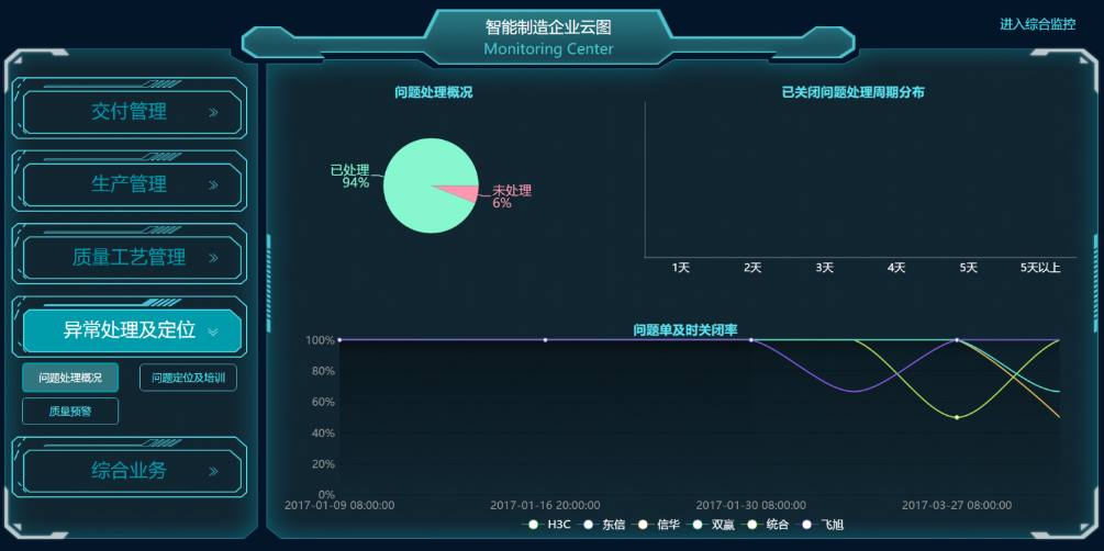 4、異常處理和定位:前面的工藝路線和關鍵質量控制點制造業已經看到產品生產過程復雜性,生產過程中不可避免的出現各類質量技術問題。快速解決各種問題既是生產支持能力的體現,也是及時滿足客戶訂單的要求。這里制造業主要體現質量,設備等監控出現異常產生的問題單的及時處理指標,通過這些指標的監控推動問題及時得到處理和閉環。