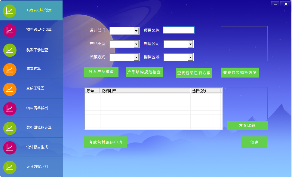 1、方案選型: 根據輸入信息調取數據庫中的已有方案,并可以對比方案。