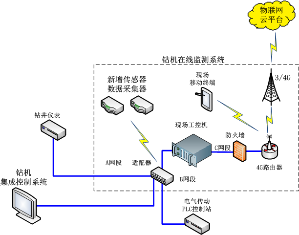 通過寄云NeuSeer Edge工業(yè)網(wǎng)關(guān),從鉆機(jī)集成控制系統(tǒng)、鉆井儀表、電氣傳動PLC控制站以及新增的各種狀態(tài)傳感器等控制系統(tǒng)和傳感器中,通過OPC UA、ModBus、CAN、Profibus/Profinet等通信接口,讀取鉆井工藝參數(shù)、設(shè)備運行參數(shù)、運維管理參數(shù)等信息,通過MQTT發(fā)送到物聯(lián)網(wǎng)平臺。