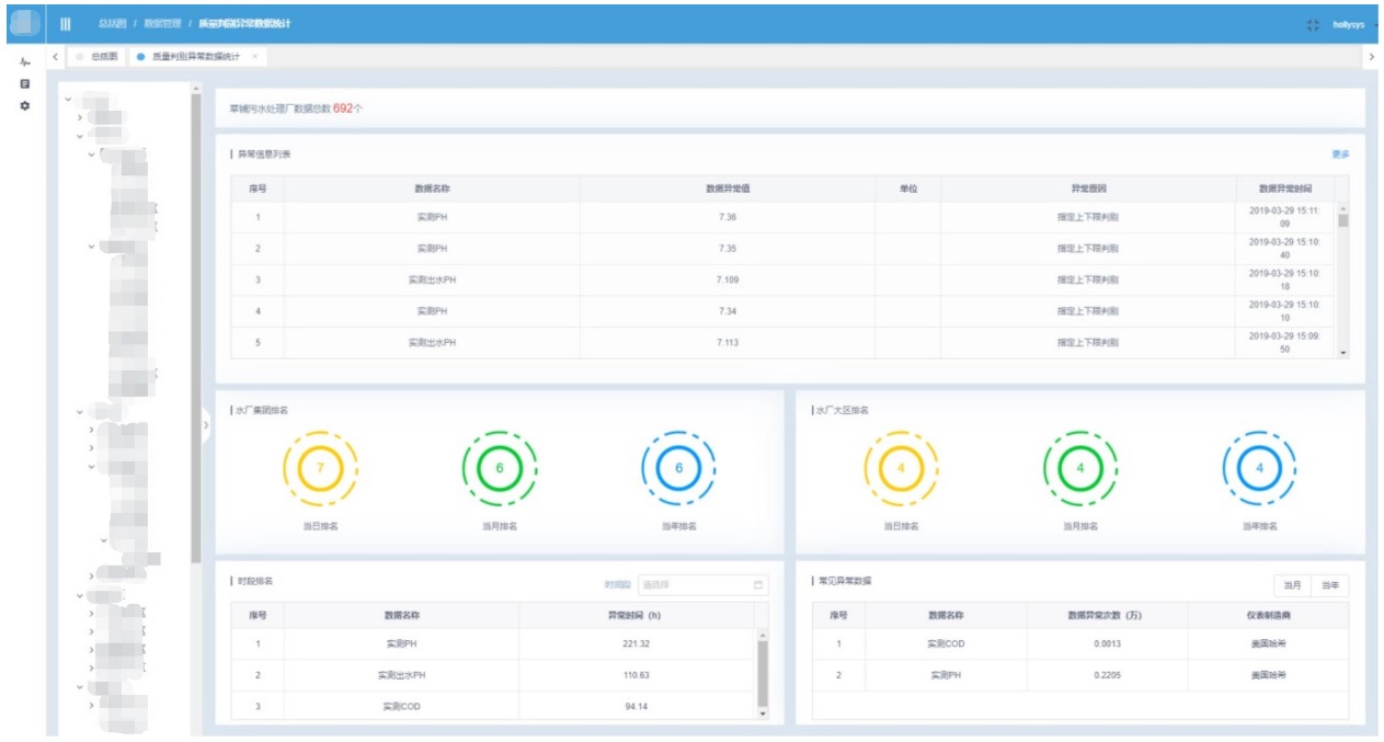 判別異常的數據通圖形化方式展示,通過對異常數據的統計分析,延長設備和儀表使用壽命,降低設備維護成本,擇優選擇更可靠的品牌產品。在地圖上看到所有污水廠分布以及在線情況,多維度對異常數據進行統計,全方位剖析數據異常統計情況。