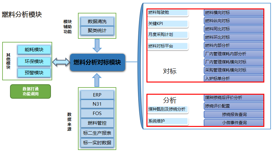 燃料分析模塊:指標對比,降低管理煤耗;在線評價摻燒方案;給燃料采購提供耗用量預測。