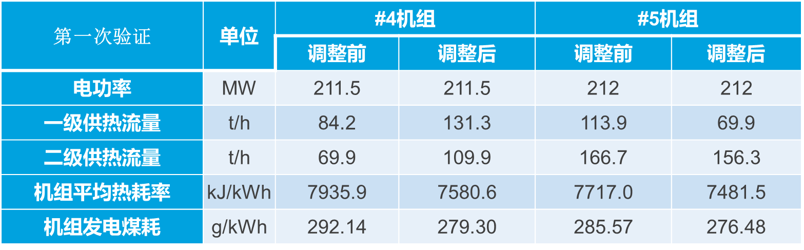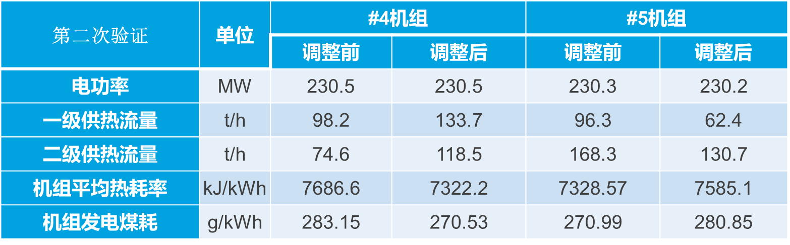 實時負荷分配模塊2019年8月22日在化工園的#4和#5機組進行了實時負荷分配的試驗,分別進行了單機電負荷210MW、230MW下供熱負荷轉移的實時負荷優(yōu)化效果驗證。試驗效果如下表所示,結果表明:扣除供熱變化因素,優(yōu)化節(jié)能量折合標煤1.8t/h,210MW下供熱負荷轉移的試驗結果,優(yōu)化后的約合全廠發(fā)電煤耗下降4.25g/kWh,230MW下供熱負荷轉移的試驗結果表明,優(yōu)化后的約合全廠發(fā)電煤耗下降2.05g/kWh。實際節(jié)能量根據(jù)負荷、工況不同,較平均分配有1~5g/kWh的下降。
