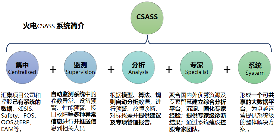 1、 華潤電力在多年的企業(yè)發(fā)展過程中,形成了“火電為主、控制上下游、多業(yè)態(tài)協(xié)同、實現(xiàn)低成本競爭”的發(fā)展模式。在新的市場競爭條件下,華潤電力迫切需要推進創(chuàng)新轉型發(fā)展,打造企業(yè)核心競爭力。火電 CSASS 分析專家系統(tǒng)是華潤電力落實集團“華潤匯”戰(zhàn)略,打造行業(yè)安全可靠生產(chǎn)、高效運行、綠色環(huán)保的標桿,構建專業(yè)知識和能力高地,引領行業(yè)業(yè)務模式創(chuàng)新的重要抓手。