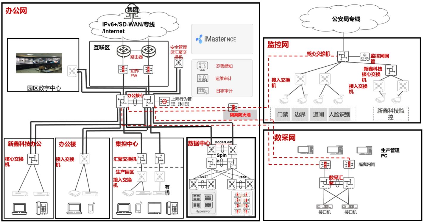 視頻監控網、數采網通過網閘/防火墻接入辦公網絡