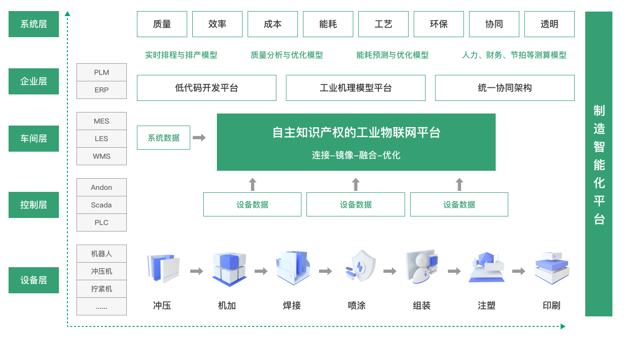 打造1個涵蓋IIOT平臺PaaS平臺以及大數據平臺的數字化底座,完善工廠運行數據采集、數據存儲、數據治理以及數據分析流程基于能源精細化管理最優化控制策略,實現設備數據和能耗數據的透明可視