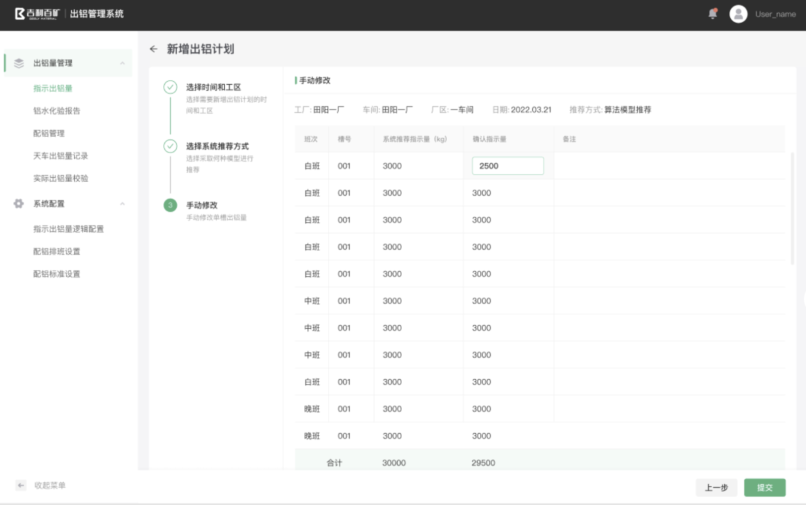 出鋁管理:打通槽控系統和MIS系統,實現出鋁量的智能預測自動排包實際出鋁量校正,并根據槽況對指示出鋁量進行智能推薦,減少人工經驗設置出鋁量的偏差問題。