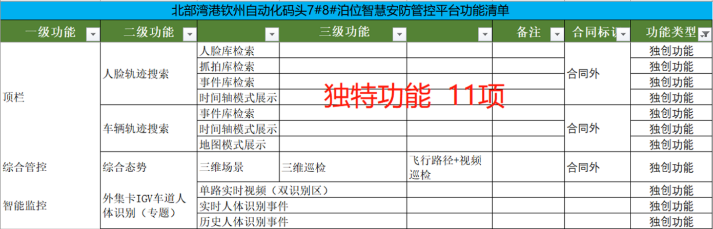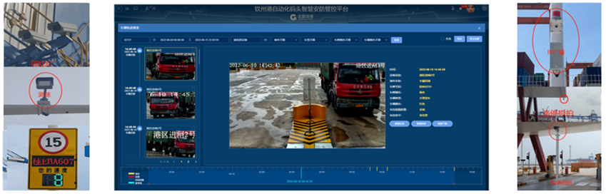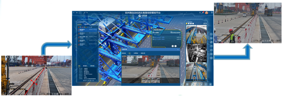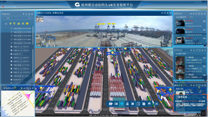 欽州自動化集裝箱碼頭智慧安防管控系統創新點:多部門多業務,雙區人車識別,AR融合,路徑漫游、軌跡追溯、網絡設備監管、多屏交互;