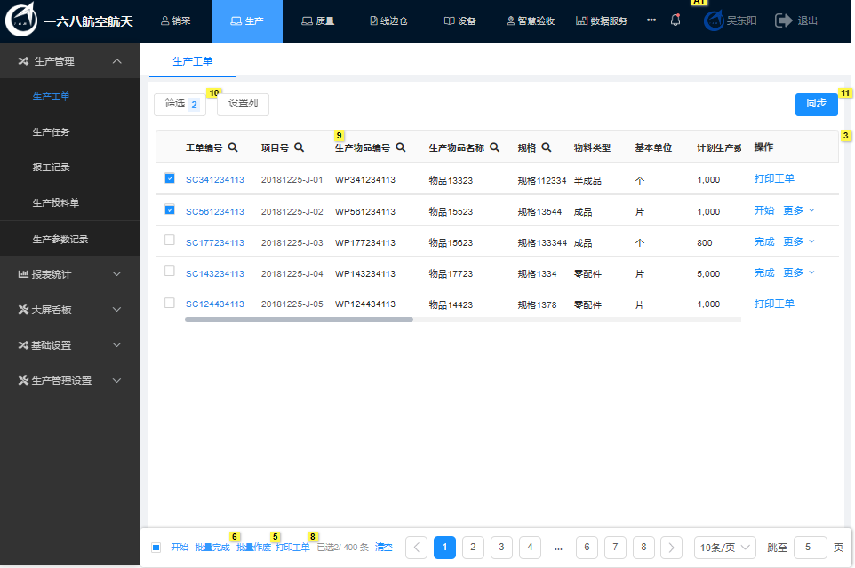 生產管理,即企業的生產執行系統,包括基于訂單的生產工單生成,集合5G設備的生產任務的執行及生產報工,同時結合生產全過程的流轉進行相應的數據采集,形成最終的生產報表及看板,完成對現場全過程把控。