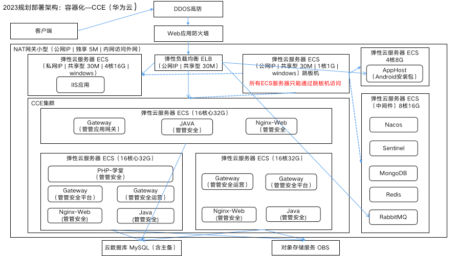 CCE集群作為容器化應用程序的托管和管理平臺,自動化地創建、部署和伸縮容器,從而提升開發和運維的效率。云數據庫MySQL作為托管在云上的關系型數據庫服務,提供高可用性和可擴展性,以滿足數據存儲和管理的需求。同時,彈性云服務器ECS提供靈活的計算資源,可以按需進行自動伸縮,以適應不同的工作負載。