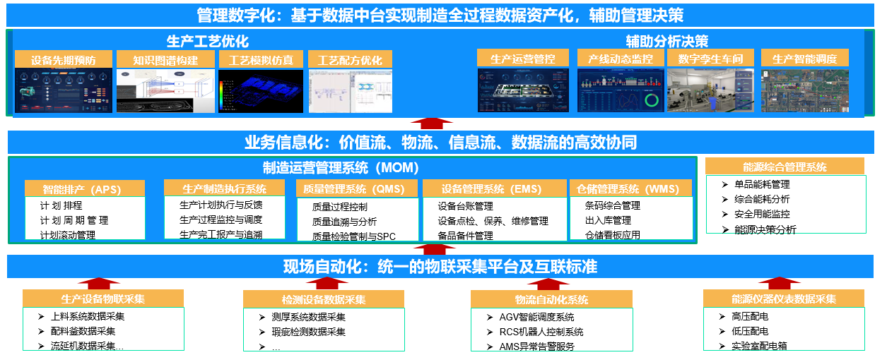 通過智能工廠建設,實現生產計劃與調度的精準控制、消除波動、持續優化、降低成本的價值流生產方式,最終實現全廠均衡、安全、高效、綠色生產,達到“保證質量、提高效率、降低勞動強度和成本”的業務目標。