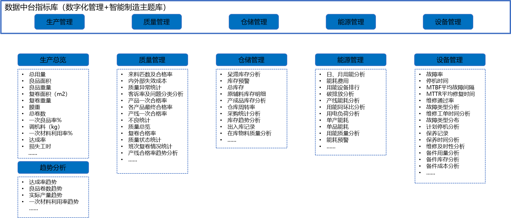通過生產過程計劃、設備、能源、質量、倉庫等數據采集匯聚,進行130+項指標實時分析,多維度全面掌控生產動態,為生產決策提供可靠數據支撐。