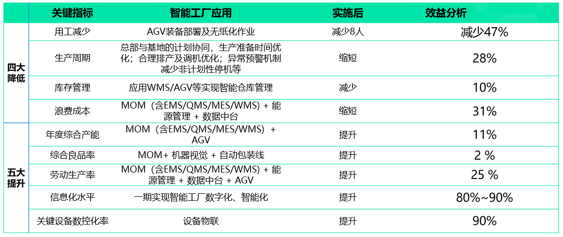 通過建設智能工廠,實現浦江基地制造能力均一性提升,實現基地設備先進性、工藝穩定性和均一性,實現少人化、規模化、標準化生產制造模式,提升工廠的制造能力(交期準、質量好、成本低、效率快),同時能實現工廠能力的沉淀、數字化能力在各基地的復制。