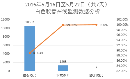 本項(xiàng)目重點(diǎn)圍繞質(zhì)量檢測(cè)需要的數(shù)據(jù)采集、數(shù)據(jù)傳輸以及數(shù)據(jù)處理和比對(duì)等主要環(huán)節(jié)。采集生產(chǎn)線電壓、擠膠壓力、冷卻溫度、牽引速度、運(yùn)轉(zhuǎn)速度等數(shù)據(jù),數(shù)據(jù)流量約為1MB/s。通過千兆高速有線傳輸網(wǎng)絡(luò),傳輸至大數(shù)據(jù)計(jì)算分析平臺(tái)。同時(shí)采用4部工業(yè)攝像機(jī)對(duì)生產(chǎn)線末端輸出機(jī)的成品進(jìn)行圖像拍照,每部攝像機(jī)的數(shù)據(jù)流量最大為29.5M/s,四部攝像機(jī)的數(shù)據(jù)流量為118M/s,每天產(chǎn)生的圖像數(shù)據(jù)量約為3T ,也采用千兆有線網(wǎng)絡(luò)進(jìn)行傳輸。經(jīng)過在線質(zhì)量實(shí)時(shí)判決系統(tǒng)分析對(duì)比,將對(duì)比分析結(jié)果數(shù)據(jù)傳輸至大數(shù)據(jù)計(jì)算分析平臺(tái),結(jié)合生產(chǎn)線采集數(shù)據(jù)進(jìn)行智能決策分析。隨著對(duì)存儲(chǔ)量不斷增加的數(shù)據(jù)進(jìn)行挖掘分析,生成產(chǎn)品質(zhì)量發(fā)展趨勢(shì)預(yù)測(cè)和生產(chǎn)線狀態(tài)預(yù)判,降低生產(chǎn)廢品率,縮短生產(chǎn)周期,提高企業(yè)的生產(chǎn)管理效率。