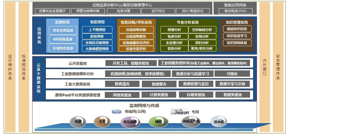 平臺功能包括設備狀態的可視化展示、智能預警與評價、設備運行優化指導、檢修決策等。