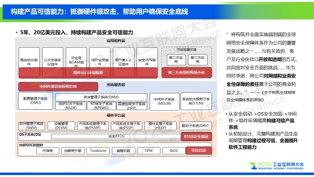8月30日下午,在2020工業(yè)互聯(lián)網(wǎng)大會“工業(yè)互聯(lián)網(wǎng)安全”主題論壇上,華為技術(shù)有限公司安全領(lǐng)域解決方案首席架構(gòu)師王雨晨以《工業(yè)互聯(lián)網(wǎng)安全體系建設(shè)——半導(dǎo)體高端制造業(yè)安全實(shí)踐》為題作演講,分享了華為在工業(yè)互聯(lián)網(wǎng)安全體系建設(shè)方面的經(jīng)驗(yàn),以及華為在半導(dǎo)體高制造行業(yè)的應(yīng)用實(shí)踐。