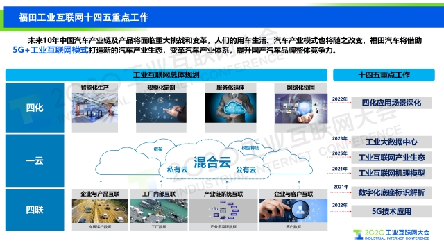 在2020工業互聯網大會工業互聯網“5G與工業互聯網融合發展”主論壇上,北汽福田汽車集團副總經理楊國濤發表題為《工業互聯網賦能商用車第一品牌》的演講,分享福田汽車對工業互聯網的探索及實踐經驗。