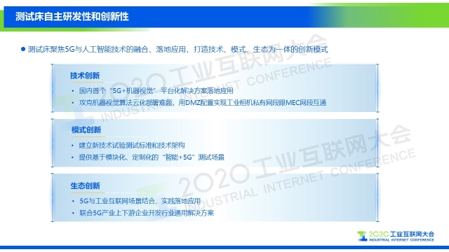 “該測試床的創(chuàng)新性從三個(gè)方面來講,一是技術(shù)創(chuàng)新,該項(xiàng)目是國內(nèi)首個(gè)5G+機(jī)器視覺平臺(tái)化解決方案落地應(yīng)用,攻克了機(jī)器視覺算法云化部署難題等;二是模式創(chuàng)新,通過建立新技術(shù)測試驗(yàn)證標(biāo)準(zhǔn)和技術(shù)架構(gòu),提供了一些模塊化、定制化的智能+5G的測試場景;三是生態(tài)創(chuàng)新,5G跟工業(yè)互聯(lián)網(wǎng)場景結(jié)合的實(shí)踐落地應(yīng)用,在國內(nèi)還比較少,海爾卡奧斯聯(lián)合5G產(chǎn)業(yè)上下游供應(yīng)商打造了一個(gè)通用的解決方案。”