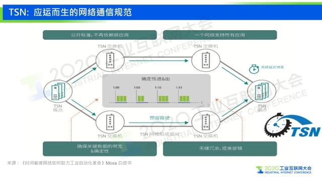 在2020工業(yè)互聯(lián)網(wǎng)大會(huì)“工業(yè)互聯(lián)網(wǎng)網(wǎng)絡(luò)”主題論壇上,摩莎公司中國(guó)區(qū)智能制造銷售總監(jiān)馬鋒發(fā)表題為《下一代自動(dòng)化系統(tǒng)的網(wǎng)絡(luò)基礎(chǔ) ——時(shí)間敏感網(wǎng)絡(luò)(TSN)的應(yīng)用價(jià)值探索》的演講,分享了時(shí)間敏感網(wǎng)絡(luò)的內(nèi)涵及發(fā)展情況。
