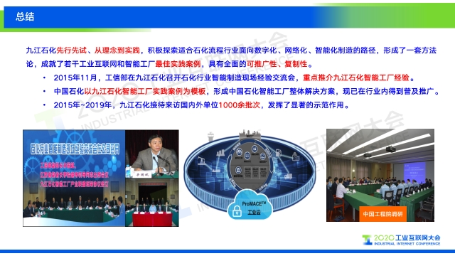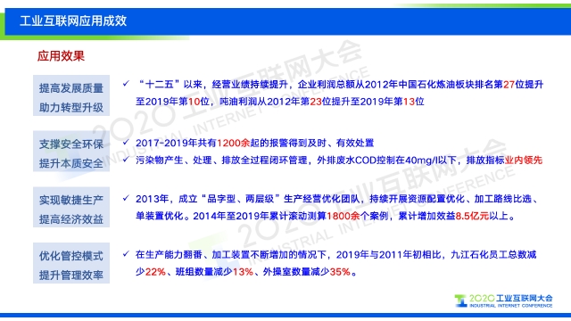 在2020工業(yè)互聯(lián)網(wǎng)大會(huì)“工業(yè)互聯(lián)網(wǎng)行業(yè)應(yīng)用”主題論壇上,中國石油化工股份有限公司九江石化分公司信息中心主任徐燕平發(fā)表題為《九江石化工業(yè)互聯(lián)網(wǎng)應(yīng)用實(shí)踐》的演講,分享九江石化近幾年在工業(yè)互聯(lián)網(wǎng)和智能工廠建設(shè)方面的實(shí)踐。
