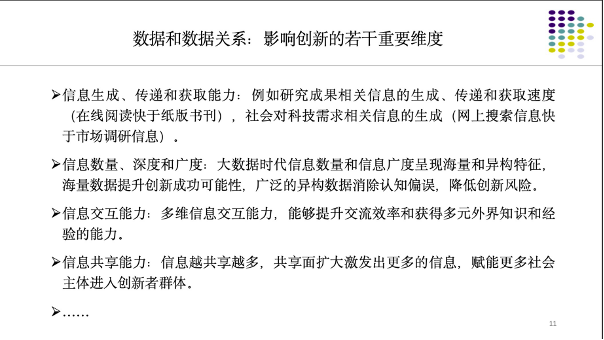 接下來舉例來講,數據要素我以確權、流通和收益為例,數據產業我用創新范式的改變作為例子,數據市場我們用規模遞增下的競爭和壟斷作為例子,公共數據以免費開發和收費開發的平衡作例子。