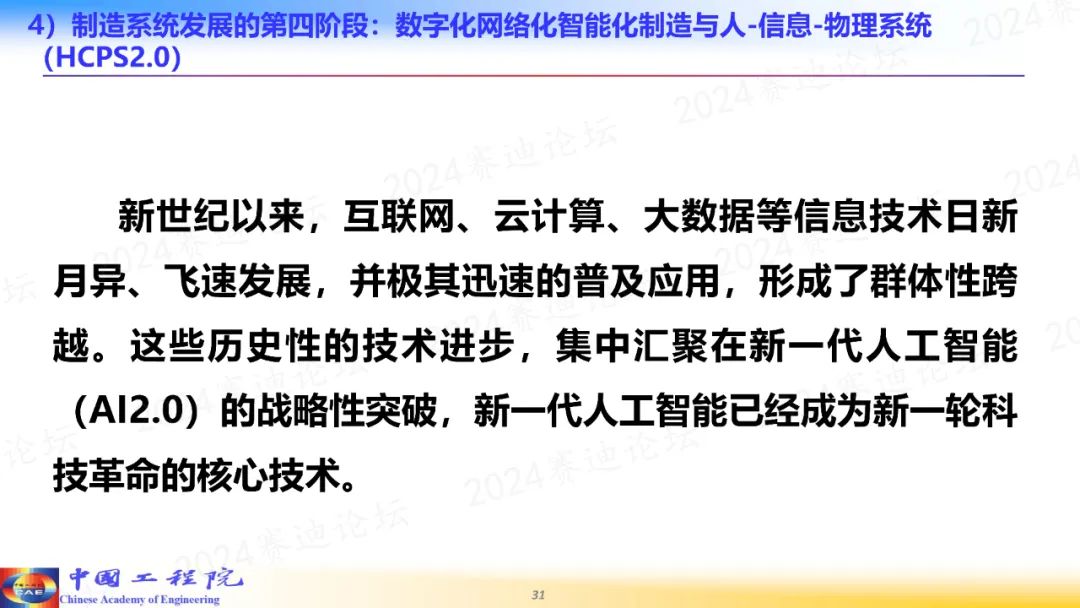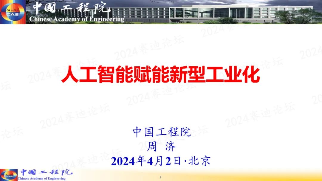 4月2日,由中國電子信息產業發展研究院(賽迪研究院)、工業和信息化部新型工業化研究中心主辦的2024賽迪論壇在京舉辦。中國工程院院士、國家制造強國建設戰略咨詢委員會主任周濟在主旨演講中表示,推進人工智能賦能新型工業化,是推進新型工業化,加快建設制造強國的技術路線。