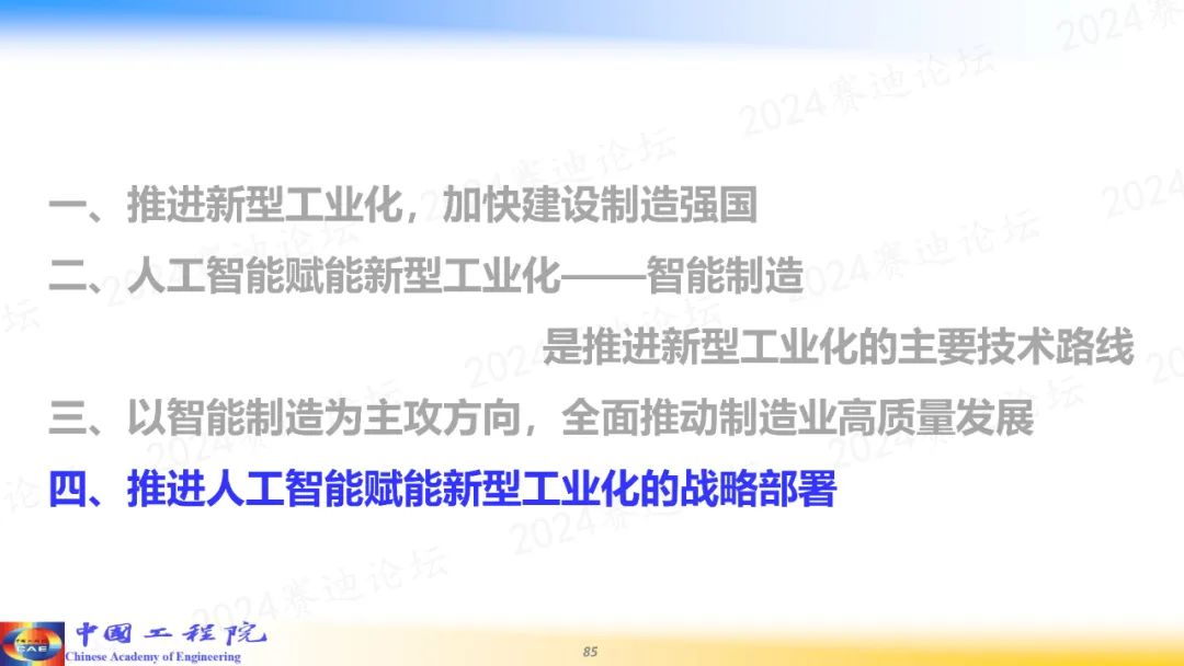 “推進新型工業化,加快建設制造強國,走一條什么樣的技術路線?要推進人工智能賦能新型工業化。”周濟表示。