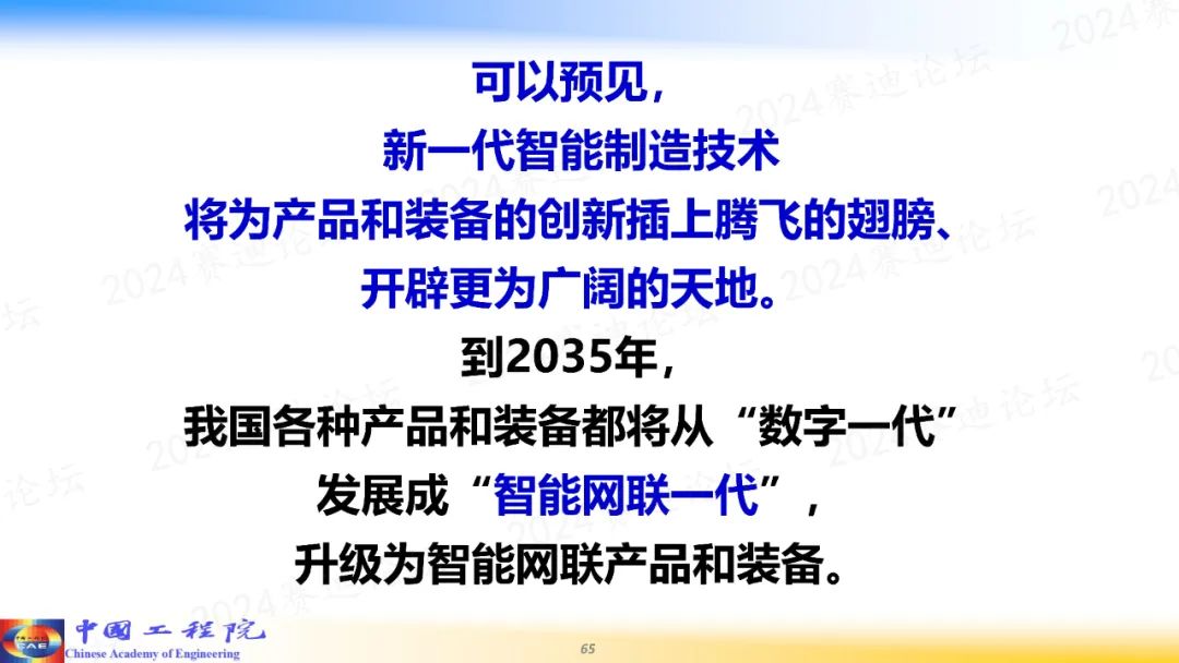 周濟指出,從現在到2035年,我國的智能制造發展總體將分成兩個階段來實現第一是數字化轉型階段,要深入推進“制造業數字化轉型重大行動”。到2027年,規上企業基本實現數字化轉型,數字化制造在全國工業企業基本普及;同時,新一代智能制造技術的科研和攻關取得突破性進展,試點和示范取得顯著成效。第二是智能化升級階段,深入推進“制造業智能化升級重大行動”。到2035年,規上企業基本實現智能化升級,數字化網絡化智能化制造在全國工業企業基本普及,我國智能制造技術和應用水平走在世界前列,中國制造業智能升級走在世界前列。