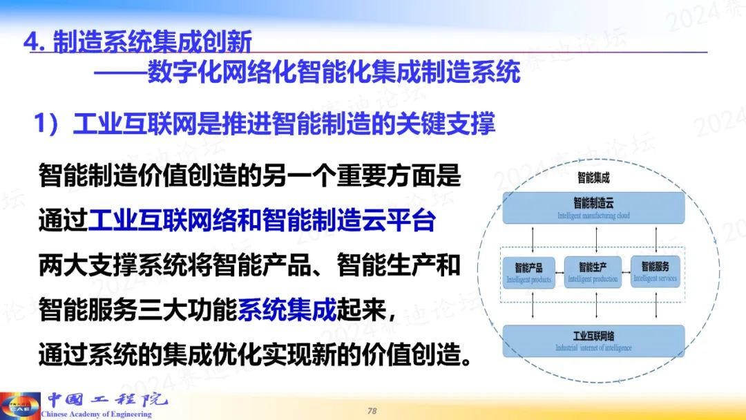 第三,智能制造是一個大系統,貫穿于產品、生產、服務等制造全生命周期的各個基本環節,在工業互聯網和智能云平臺支持下,交融成為智能集成制造系統。