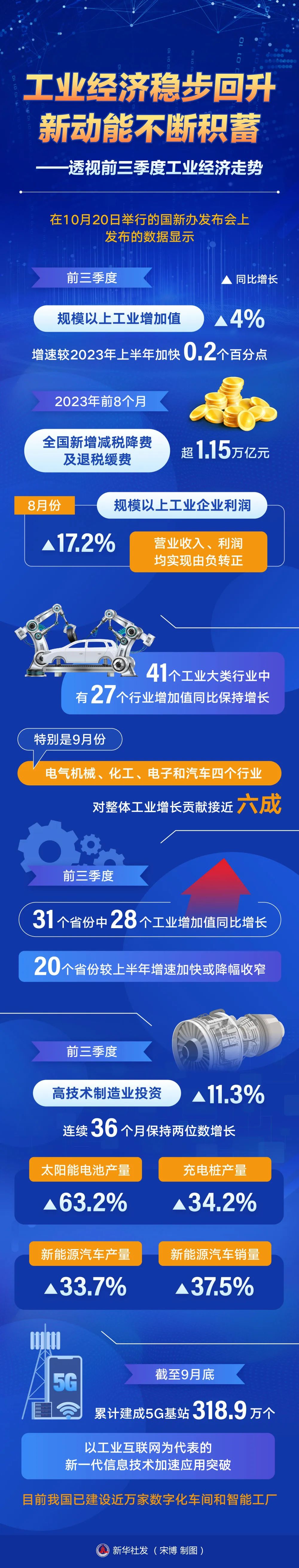會上發布的數據顯示,前三季度規模以上工業增加值同比增長4%,增速較今年上半年加快0.2個百分點。今年前8個月,全國新增減稅降費及退稅緩費超1.15萬億元。在各界共同努力下,企業效益加快恢復,其中,8月份規模以上工業企業利潤同比增長17.2%,營業收入、利潤均實現由負轉正。