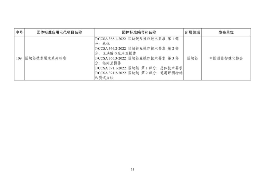 為深入貫徹落實《國家標準化發展綱要》,大力發展團體標準,推進團體標準應用示范,根據《工業和信息化部辦公廳關于開展2023年百項團體標準應用示范項目申報工作的通知》(工信廳科函〔2023〕165號)要求,經自愿申報、地方或行業推薦、專家審查和社會公示等環節,我部遴選出109項2023年團體標準應用示范項目(名單見附件),現予以公布。