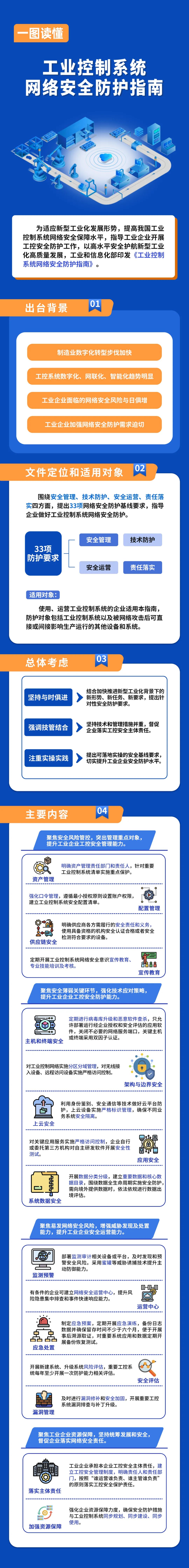 工業(yè)控制系統(tǒng)作為工業(yè)生產(chǎn)運(yùn)行的基礎(chǔ)核心,其網(wǎng)絡(luò)安全事關(guān)企業(yè)運(yùn)營和生產(chǎn)安全、事關(guān)產(chǎn)業(yè)鏈供應(yīng)鏈安全穩(wěn)定、事關(guān)經(jīng)濟(jì)社會(huì)運(yùn)行和國家安全。2016年,工業(yè)和信息化部出臺(tái)《工業(yè)控制系統(tǒng)信息安全防護(hù)指南》,對(duì)有效指導(dǎo)工業(yè)企業(yè)開展工控安全防護(hù)工作發(fā)揮了積極作用。2017年以來,我國相繼頒布了《網(wǎng)絡(luò)安全法》《數(shù)據(jù)安全法》《密碼法》等法律法規(guī)及行業(yè)應(yīng)用方面的部門規(guī)章,現(xiàn)有政策文件未能充分銜接相關(guān)法律法規(guī)要求。與此同時(shí),工業(yè)企業(yè)數(shù)字化轉(zhuǎn)型步伐加快,工業(yè)控制系統(tǒng)開放互聯(lián)趨勢(shì)明顯,工業(yè)企業(yè)面臨的網(wǎng)絡(luò)安全風(fēng)險(xiǎn)與日俱增,工業(yè)企業(yè)加強(qiáng)網(wǎng)絡(luò)安全防護(hù)需求迫切。