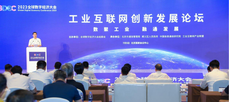 2023年7月5日,2023全球數字經濟大會—工業互聯網創新發展專題論壇在北京舉辦。工業和信息化部信息通信管理局一級巡視員王鵬,北京市經濟和信息化局黨組成員、副局長顧瑾栩,北京市通信管理局黨組成員、副局長王暉,北京市順義區委常委、副區長徐曉俊,中國信息通信研究院(以下簡稱“中國信通院”)紀委書記李德文為活動致辭;中國工程院院士沈昌祥、中國信通院工業互聯網與物聯網研究所副所長羅松出席活動并作主旨報告;工業互聯網領域的行業專家、企業代表以及新聞媒體參加了本次活動。