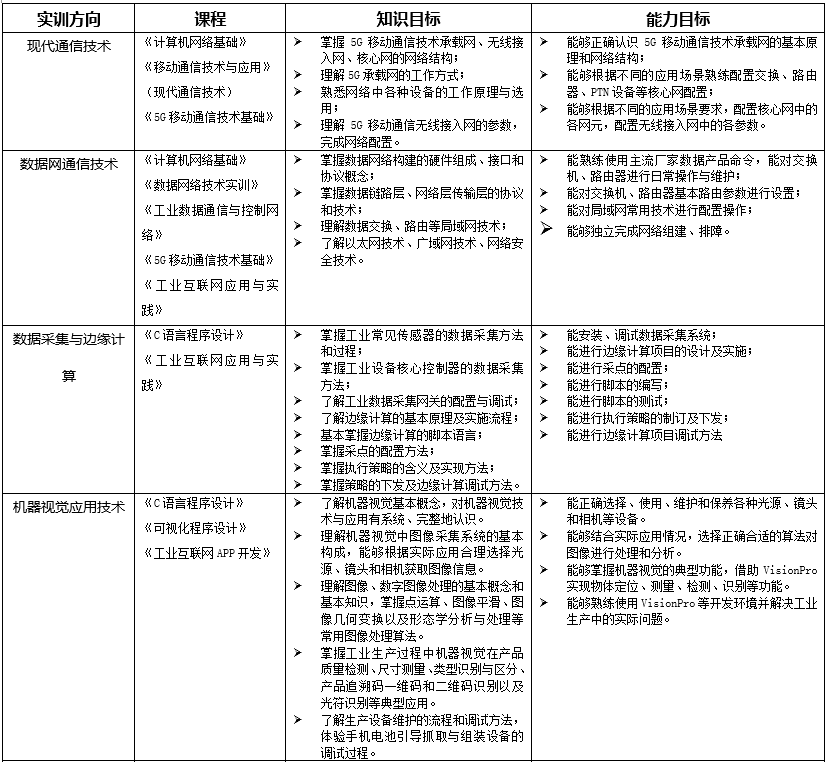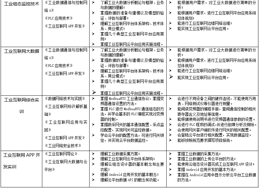1、校內(nèi)低年級(jí)學(xué)生專業(yè)化培養(yǎng)根據(jù)“工業(yè)互聯(lián)網(wǎng)技術(shù)”專業(yè)人才培養(yǎng)方案,以專業(yè)基礎(chǔ)知識(shí)、技術(shù)、技能為主,培養(yǎng)具有扎實(shí)基礎(chǔ)與素養(yǎng)的專業(yè)人才。2、校內(nèi)高年級(jí)學(xué)生定向化培養(yǎng)根據(jù)當(dāng)前及預(yù)期就業(yè)需求,以熱門就業(yè)崗位所需技能為主,培訓(xùn)學(xué)生入職即上崗的專業(yè)技能。3、企業(yè)員工訂單式培養(yǎng)針對(duì)工業(yè)互聯(lián)網(wǎng)相關(guān)企業(yè)自有部分員工對(duì)本專業(yè)領(lǐng)域或?qū)I(yè)技術(shù)的不完全掌握,由企業(yè)自行提出需要培訓(xùn)的內(nèi)容,承接其培訓(xùn)工作。4、社會(huì)人員項(xiàng)目制培養(yǎng)針對(duì)無法由企業(yè)出面組織、或本人有意愿進(jìn)入工業(yè)互聯(lián)網(wǎng)領(lǐng)域的散裝社會(huì)人員,制定適合不同層次、不同崗位的實(shí)訓(xùn)項(xiàng)目,吸引其參加培訓(xùn)。5、國際化人才培養(yǎng)針對(duì)本校外籍留學(xué)生,以專業(yè)基礎(chǔ)知識(shí)與技能為主,結(jié)合其所在國家工業(yè)互聯(lián)網(wǎng)發(fā)展水平,設(shè)計(jì)實(shí)訓(xùn)項(xiàng)目。6、“1+X”技能證書培訓(xùn)與認(rèn)證針對(duì)具有拿證需求的人員,根據(jù)技能證書要求,進(jìn)行培訓(xùn)及考核。7、線上培訓(xùn)課程輻射其他地區(qū)整合蘇州本地的工業(yè)互聯(lián)網(wǎng)產(chǎn)業(yè)發(fā)展的經(jīng)驗(yàn)和技術(shù)積累,將其中具有代表性的內(nèi)容做成培訓(xùn)內(nèi)容,通過線上課程,傳播到其他城市和地區(qū),為工業(yè)互聯(lián)網(wǎng)技術(shù)的全面發(fā)展和普及做貢獻(xiàn)。