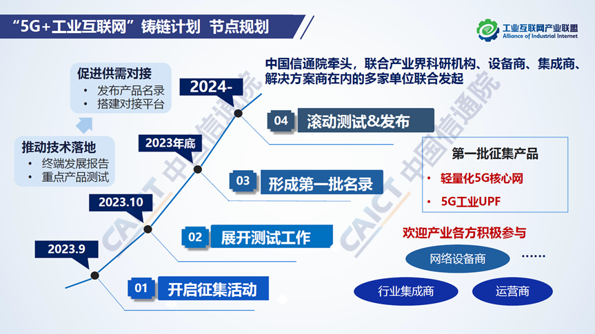 按照“鑄鏈計劃”活動整體規(guī)劃,本期啟動征集輕量化5G核心網(wǎng)、5G工業(yè)UPF兩款產(chǎn)品,具體參與方式請見附件PPT,歡迎相關(guān)廠商積極報名!