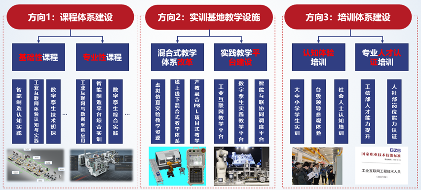 此外,實(shí)訓(xùn)基地還將進(jìn)一步完善實(shí)訓(xùn)基地教學(xué)設(shè)施,開展線上線下相結(jié)合的混合式教學(xué)體系改革。以工業(yè)互聯(lián)網(wǎng)、智能制造、數(shù)字孿生等作為主干課程,在實(shí)訓(xùn)基地現(xiàn)有教學(xué)設(shè)施的基礎(chǔ)上,研發(fā)更多工業(yè)互聯(lián)網(wǎng)相關(guān)專用教學(xué)設(shè)施、設(shè)備,并開發(fā)相應(yīng)的線上教學(xué)資源,形成虛擬仿真實(shí)驗(yàn)教學(xué)能力、線上線下混合式教學(xué)能力和產(chǎn)教融合PBL項(xiàng)目式教學(xué)能力,最終建成全國(guó)領(lǐng)先、線上線下融合的工業(yè)互聯(lián)網(wǎng)人才培養(yǎng)體系。