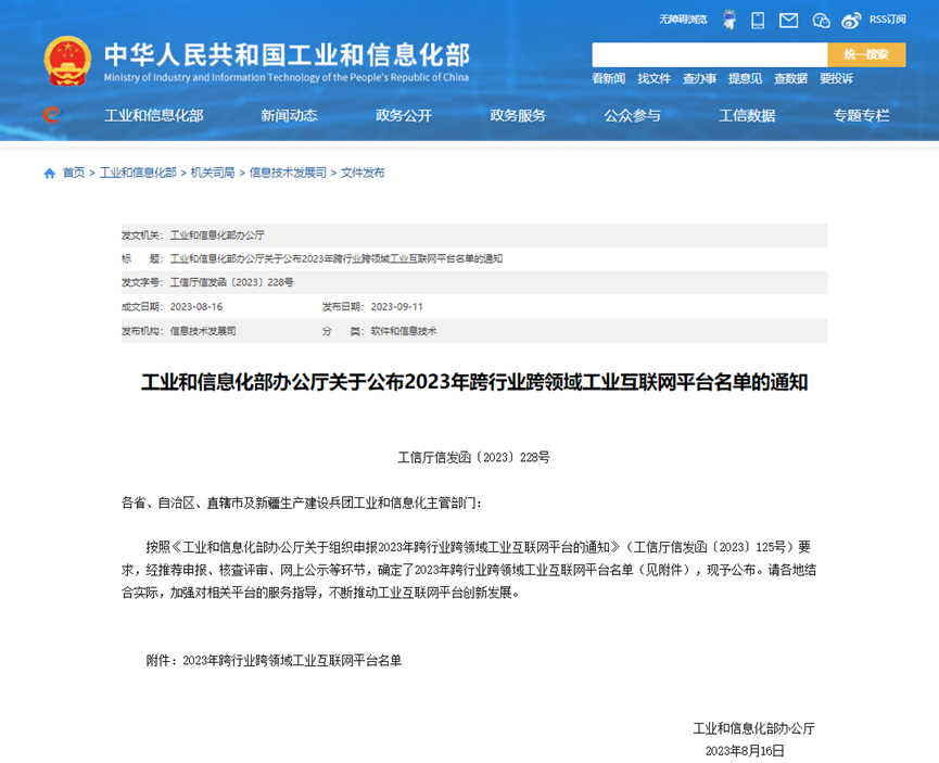 9月11日,工信部公布2023年跨行業跨領域工業互聯網平臺清單。按照《工業和信息化部辦公廳關于組織申報2023年跨行業跨領域工業互聯網平臺的通知》要求,經推薦申報、核查評審、網上公示等環節,最終已培育50家雙跨平臺,連接設備近9000萬臺套。
