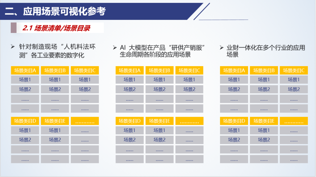 按照特定的順序或類別展示各種應用場景的場景列表,企業和平臺也需要編制一個總的場景目錄。