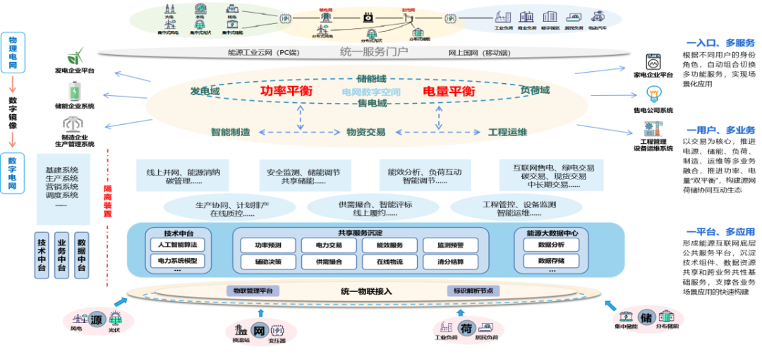 例如,下圖的國家電網的能源工業云網的整體業務視圖,頂層場景按供給側(功率平衡)和需求側(電量平衡)之間的協調和優化。