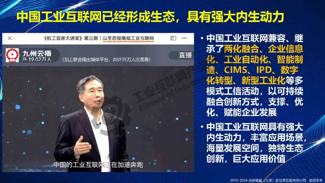 中國工業互聯網兼容繼承了兩化融合、企業信息化、工業自動化、智能制造、CIMS、IPD、數字化轉型、新型工業化等多模式活動,以可持續融合創新方式,支撐、優化、賦能企業發展,對推動制造業轉型升級、提升生產效率、降低運營成本等方面具有重要意義。在過去多年發展中工業互聯網已經擠出很多泡沫,即將迎來高質量發展新時期。