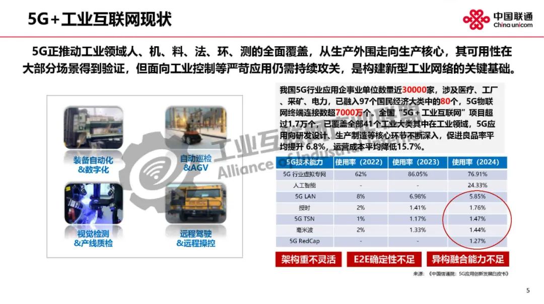 5G正推動工業(yè)領(lǐng)域人、機、料、法、環(huán)、測的全面覆蓋,從生產(chǎn)外圍走向生產(chǎn)核心,其可用性在大部分場景得到驗證,但面向工業(yè)控制等嚴(yán)苛應(yīng)用仍需持續(xù)攻關(guān),是構(gòu)建新型工業(yè)網(wǎng)絡(luò)的關(guān)鍵基礎(chǔ)。