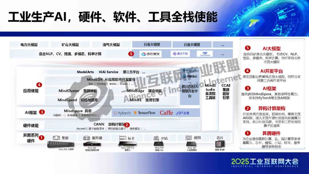 工業(yè)生產(chǎn)AI,包括Atlas、昇騰等技術(shù)和產(chǎn)品,以及MindStudio等全流程工具鏈,具有如下特征:一是全棧智能,算力芯片以及使能組件和開發(fā)工具鏈,盤古大模型。二是數(shù)據(jù)價(jià)值化,打通全量數(shù)據(jù),突破工廠邊界,全面釋放數(shù)據(jù)價(jià)值。