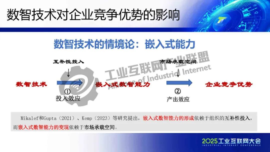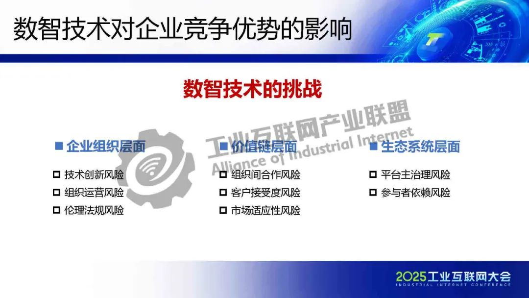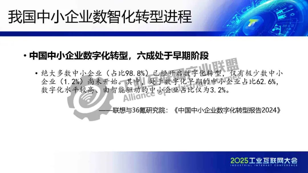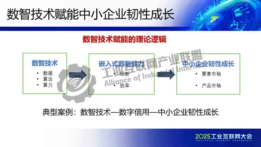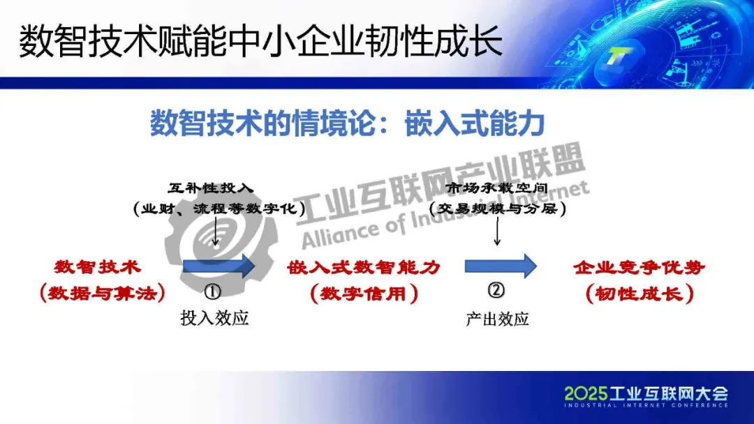 鄔愛其介紹,數(shù)智技術(shù)正成為中小企業(yè)韌性成長的關(guān)鍵驅(qū)動力。數(shù)智技術(shù)通過提升協(xié)同效率、優(yōu)化供應(yīng)鏈和構(gòu)建創(chuàng)新生態(tài),顯著增強企業(yè)競爭優(yōu)勢,但其效能取決于組織的互補性投入和市場承載空間。我國中小企業(yè)數(shù)智化轉(zhuǎn)型進程加速,政策支持力度加大,2024年多項政策文件出臺推動試點和評測,但整體仍處早期階段。數(shù)智技術(shù)通過構(gòu)建數(shù)字信用體系賦能韌性成長,例如金蝶信科的AI融資匹配方案,利用產(chǎn)業(yè)鏈數(shù)據(jù)圖譜穿透上下游風險,助力企業(yè)精準識別客戶與供應(yīng)商。專精特新企業(yè)成為轉(zhuǎn)型中堅,集群化、“鏈式”轉(zhuǎn)型模式逐步成型。未來需進一步解決技術(shù)嵌入能力與市場變現(xiàn)的協(xié)同問題。