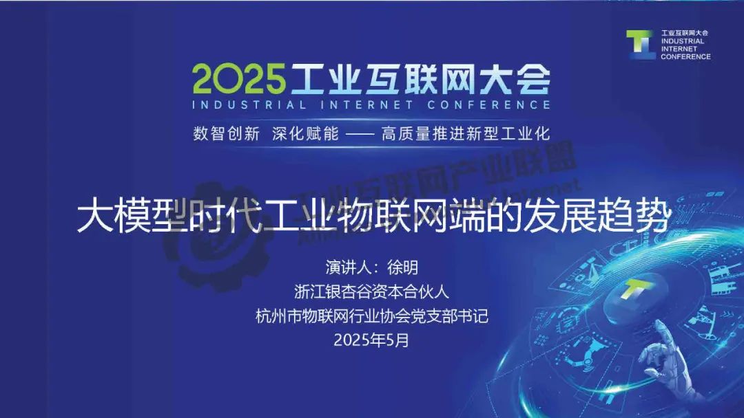 5月21日,在2025工業互聯網大會“工業互聯網產融合作專題活動”上,環亞數字經濟研究院院長、長三角城市經濟協調會物聯網專委會秘書長、銀杏谷資本合伙人 發表了《大模型時代下物聯網端的發展趨勢》的主題演講。