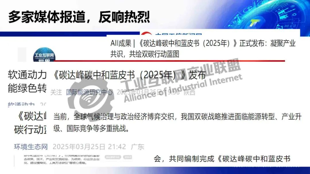 5月22日,在2025工業互聯網大會“工業數字化綠色化協同轉型專題活動”上,工業互聯網產業聯盟碳達峰碳中和工作組主席、中國信息通信研究院產業與規劃研究所總工程師高艷麗對《碳達峰碳中和藍皮書(2025)》進行了解讀。