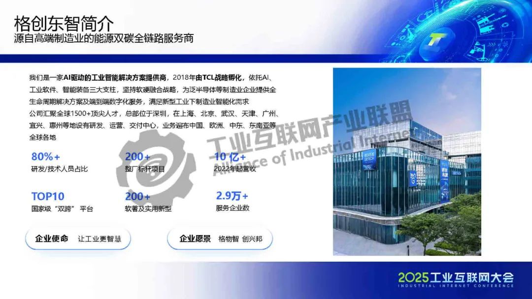 5月22日,在2025工業互聯網大會“工業數字化綠色化協同轉型專題活動”上,工業互聯網產業聯盟碳達峰碳中和工作組副主席、TCL格創東智科技有限公司能源雙碳事業部總經理王輝發表了《AI賦能高端制造業雙化協同轉型》的主題演講。