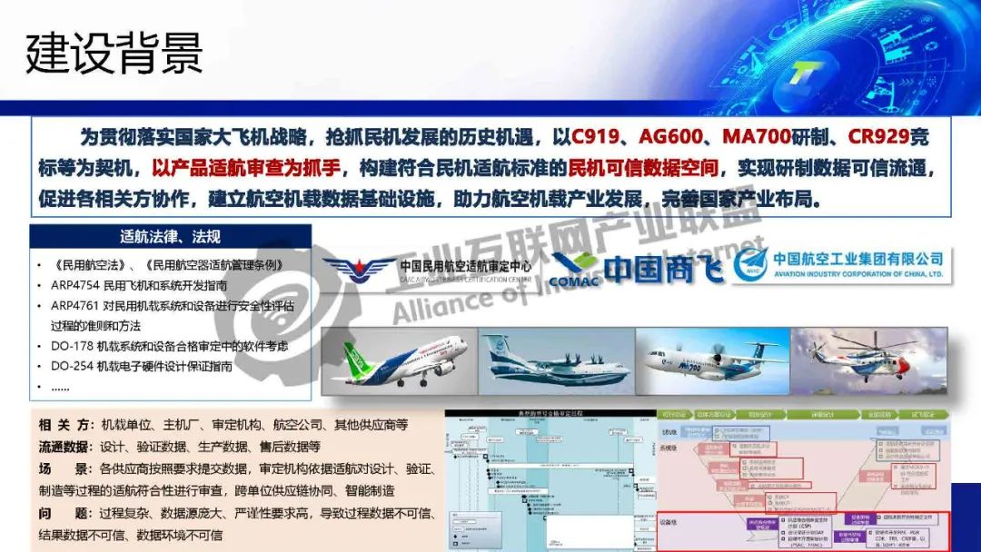 可信適航審定與適航預審查:需要借助存證、溯源、可信體系,實現研發過程可信、研發數據可信,提升民機機載研發數據可信能力,滿足適航審定要求。通過安全可信的數據分析,訓練適航預審查模型,大幅降低適航預審查人力投入。