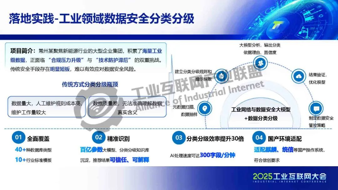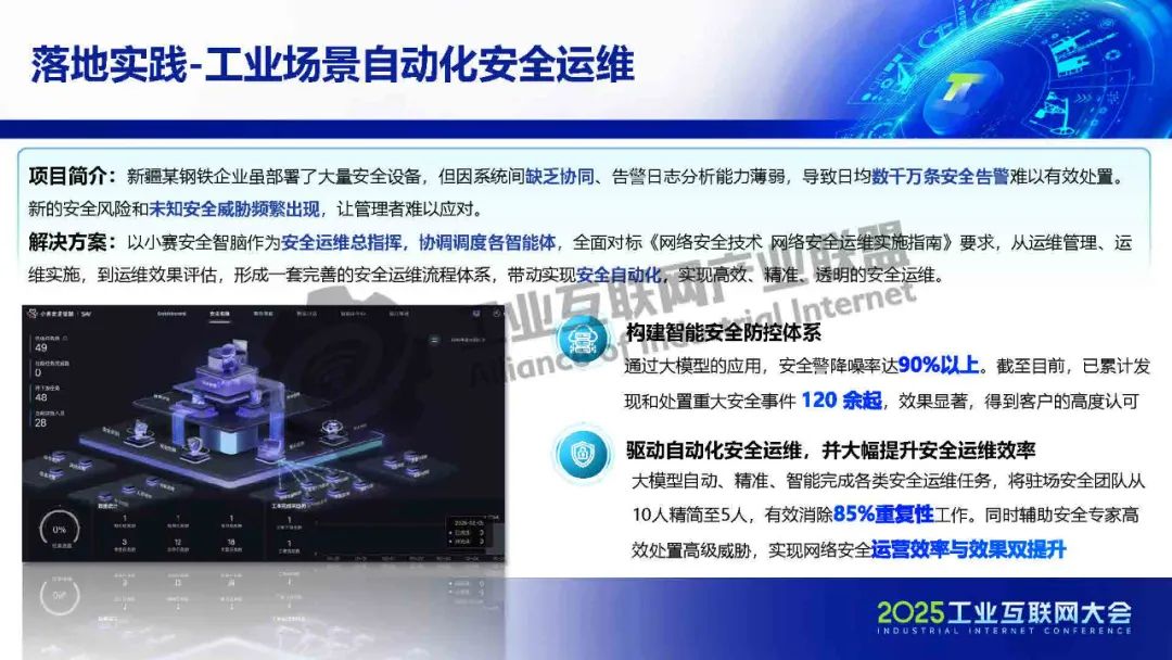 孫浩介紹,盡管DeepSeek等通用大模型迅速崛起并持續(xù)突破,但在工業(yè)網(wǎng)絡(luò)與數(shù)據(jù)安全等垂直領(lǐng)域應(yīng)用時(shí),仍面臨專業(yè)場(chǎng)景適配性不足等挑戰(zhàn)。工業(yè)網(wǎng)絡(luò)與安全應(yīng)用通過(guò)對(duì)大模型進(jìn)行針對(duì)性訓(xùn)練,推動(dòng)其能力與工業(yè)網(wǎng)絡(luò)及數(shù)據(jù)安全場(chǎng)景深度融合,確保大模型在工業(yè)互聯(lián)網(wǎng)安全領(lǐng)域的可靠落地,以通用安全知識(shí)為基礎(chǔ),融合工控安全、工業(yè)場(chǎng)景等知識(shí),訓(xùn)練出具備深度分析、智能決策能力的工業(yè)領(lǐng)域網(wǎng)絡(luò)與數(shù)據(jù)安全大模型。