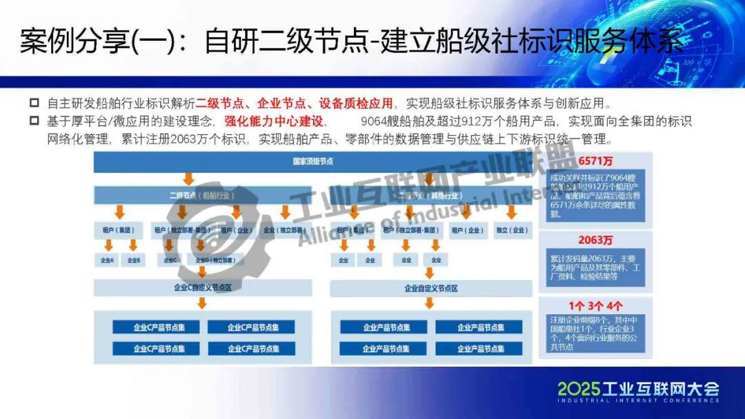 張全都介紹,亞信科技通過“星火標識×”計劃,提供標識解析一體化服務,包括二級節點規劃、企業節點建設及兩化改造等,助力企業實現全要素、全流程的精細化管理。案例涵蓋船舶行業標識服務體系、物資倉儲管理、生產運營生命周期管理、中小企業數字化底座、能源能耗管理、物流平臺及數字孿生應用,展示了標識解析在多個領域的落地成效。