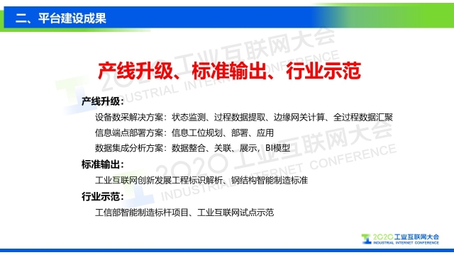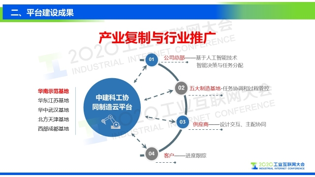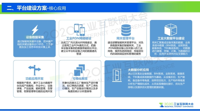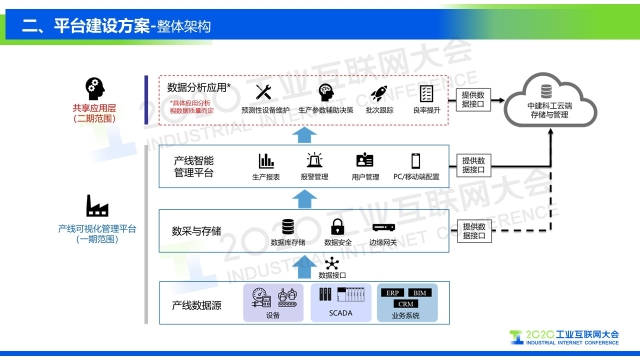 “中建科工根據'數字化、信息化、智能化'的設計理念,充分利用工業PON網絡、智能生產管理系統、工業大數據平臺等先進技術,構建基于云架構的大數據分析平臺。通過建立工業互聯網大數據分析平臺,進行數據采集、分析、決策,優化提升可制造性和可服務性,形成企業智能管控閉環,提高生產效率,降低運營成本。”