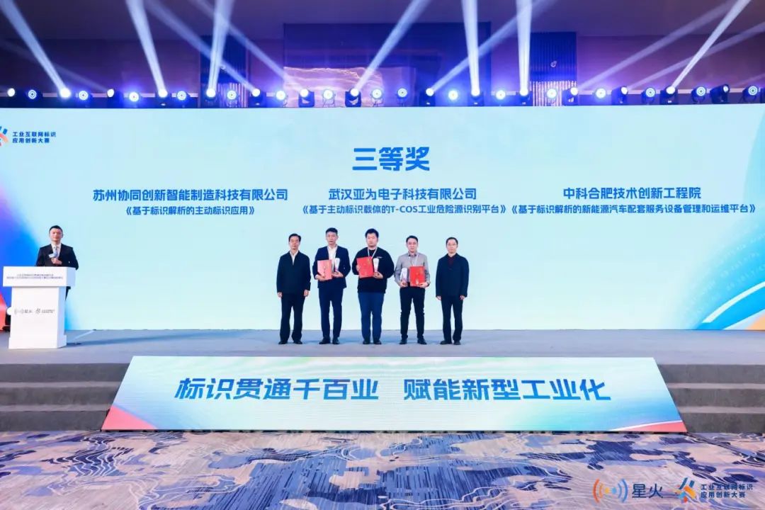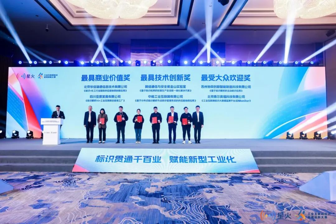 北京華信瑞德信息技術(shù)有限公司的《標(biāo)識(shí)+化工行業(yè)國(guó)際供應(yīng)鏈協(xié)同創(chuàng)新應(yīng)用》,四川亞度家具有限公司的《標(biāo)識(shí)解析5G+工業(yè)互聯(lián)網(wǎng)全鏈接工廠》獲最具商業(yè)價(jià)值獎(jiǎng);網(wǎng)絡(luò)通信與安全紫金山實(shí)驗(yàn)室的《基于標(biāo)識(shí)檢索的輪轂生產(chǎn)全流程一體化解決方案》,中船工業(yè)互聯(lián)網(wǎng)有限公司的《基于分布式標(biāo)識(shí)解析節(jié)點(diǎn)同步管理系統(tǒng)的供應(yīng)鏈協(xié)同應(yīng)用》獲最具技術(shù)創(chuàng)新獎(jiǎng);蘇州協(xié)同創(chuàng)新智能制造科技有限公司的《基于標(biāo)識(shí)解析的主動(dòng)標(biāo)識(shí)應(yīng)用》,北京泰爾英福科技有限公司的《工業(yè)互聯(lián)網(wǎng)標(biāo)識(shí)大數(shù)據(jù)監(jiān)測(cè)平臺(tái)IDMonitor》獲最受大眾歡迎獎(jiǎng)。